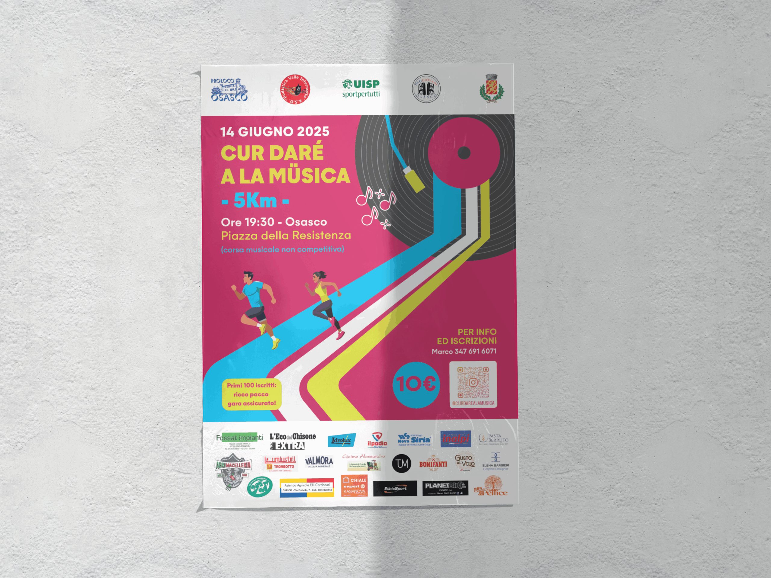 Design and creation of the material for a musical run. The aim is to attract people’s attention and encourage them to participate in this completely new initiative. For this reason I used bright colors and the funny tone given by the illustrations.